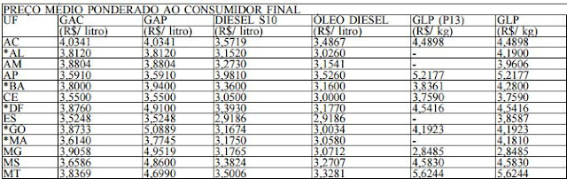 De acordo com a publicação, os Estados deverão seguir a nova tabela a partir do próximo dia 16 de abril. No Ceará, por exemplo, o preço médio da gasolina que deve ser cobrado ao consumidor será fixado em R$ 3,55. Confira abaixo os valores definidos pela Confaz: